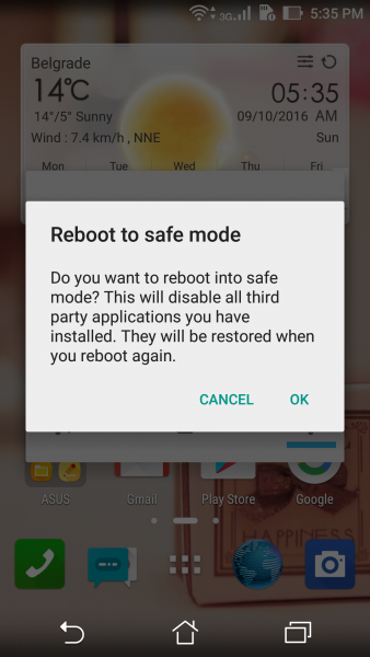 • Clique em OK para confirmar e seu dispositivo será reiniciado em “Modo de segurança