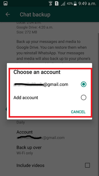 Se você ainda enfrentar o mesmo problema com os dados de backup do WhatsApp, sugiro que use uma conta diferente do Google Drive. Se você não tem nenhuma outra conta no Google, crie uma nova e altere as configurações de backup no aplicativo. Depois disso, verifique se o processo de backup está funcionando bem ou não.
