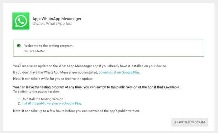 Quando o mesmo problema ocorre continuamente, você deve se inscrever no programa beta do WhatsApp. Isso ajudará você a testar quaisquer novas atualizações antes de serem lançadas publicamente. Mas se você estiver usando a versão beta do WhatsApp, os usuários podem descobrir que o backup do bate-papo do WhatsApp está travado.