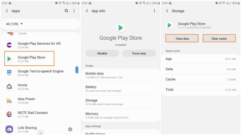 Quando reiniciar não ajuda, tente limpar o cache e os dados da Google Play Store. Este também é um passo útil para se livrar dos erros 491 da Play Store.