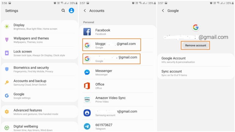 - Primeiro, vá para Configurações> Contas> clique na opção Google e, em seguida, clique em Remover conta do Gmail