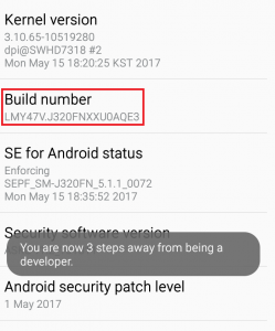 • Agora, na nova tela, clique no número de compilação por algum tempo, a menos que a opção “opção do desenvolvedor esteja ativada