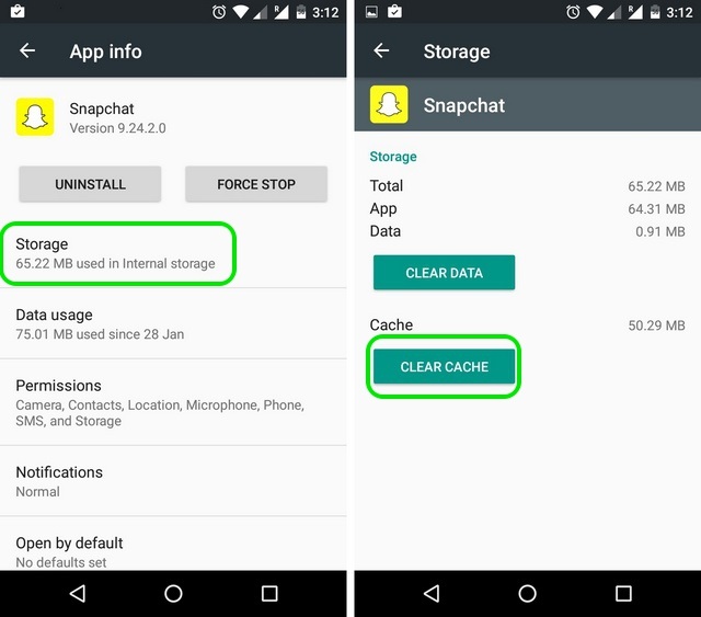 Você também deve tentar limpar o cache e os dados do aplicativo Snapchat. Isso também o ajudará a resolver o erro “Não foi possível conectar” no Snapchat.