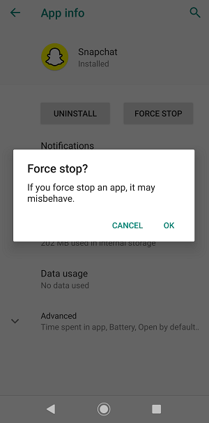 Isso fechará o aplicativo que estava em execução. Agora você deve clicar no ícone do Snapchat mais uma vez e iniciar o aplicativo. Esperançosamente, agora o aplicativo funcionará sem nenhum erro.