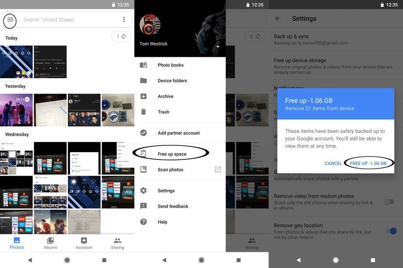 - Você pode selecionar “liberar espaço” para criar algum espaço antes de fazer backup das imagens e, em seguida, você pode permitir que suas fotos façam backup.