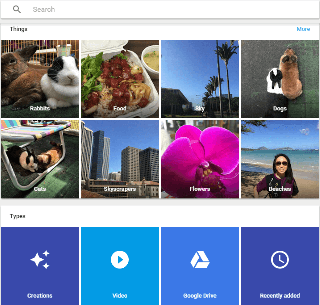 - Aqui você obterá as fotos carregadas classificadas de acordo com as categorias para facilitar a localização do que você está procurando, como Pessoas, Lugares e Coisas.