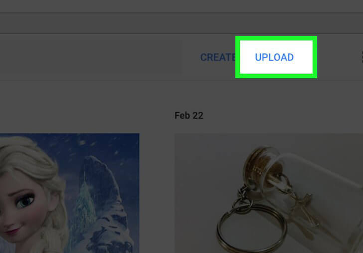 - Em seguida, toque em “Upload” que fica ao lado da opção “Criar”
