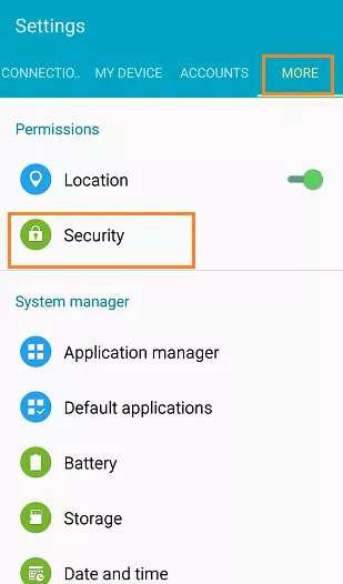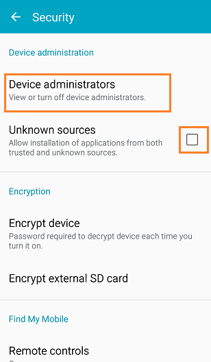 • Se você não conseguir esta opção, vá para Configurações -> Mais -> Segurança -> Administradores de dispositivos