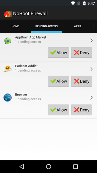Existem muitos deles, como o NoRoot Firewall, que podem ajudar a controlar o acesso à Internet com bastante facilidade de todos os aplicativos que você instalou.