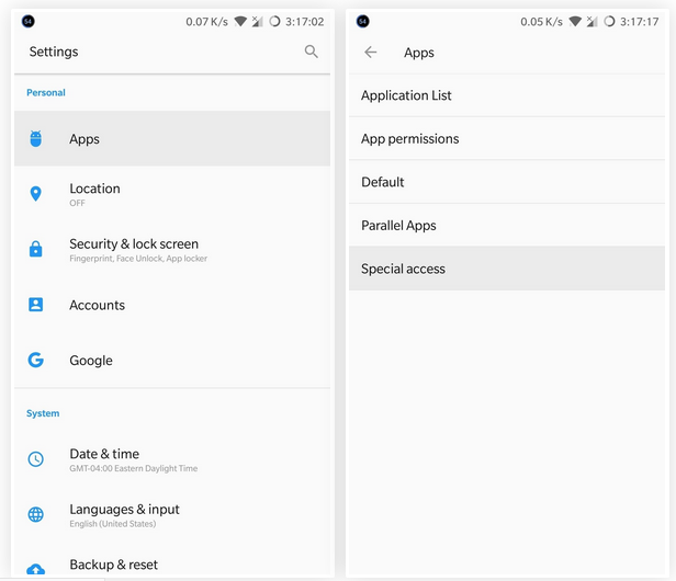 NOTA – Cada telefone / tablet Android tem configurações diferentes para encontrar a opção Acesso especial. Por favor, encontre-o de acordo com o modelo do seu telefone Android.