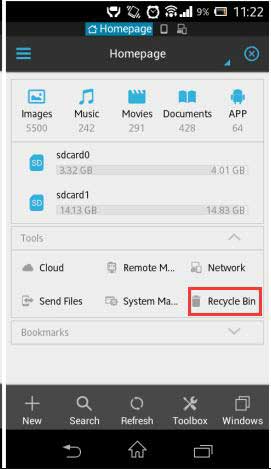 O primeiro método é usar uma Lixeira para recuperar arquivos perdidos do ES File Explorer e o segundo é, usando um programa de terceiros.