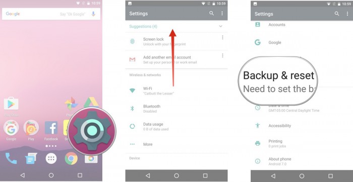 • Vá para Configurações, escolha Backup e Redefinir opção no telefone